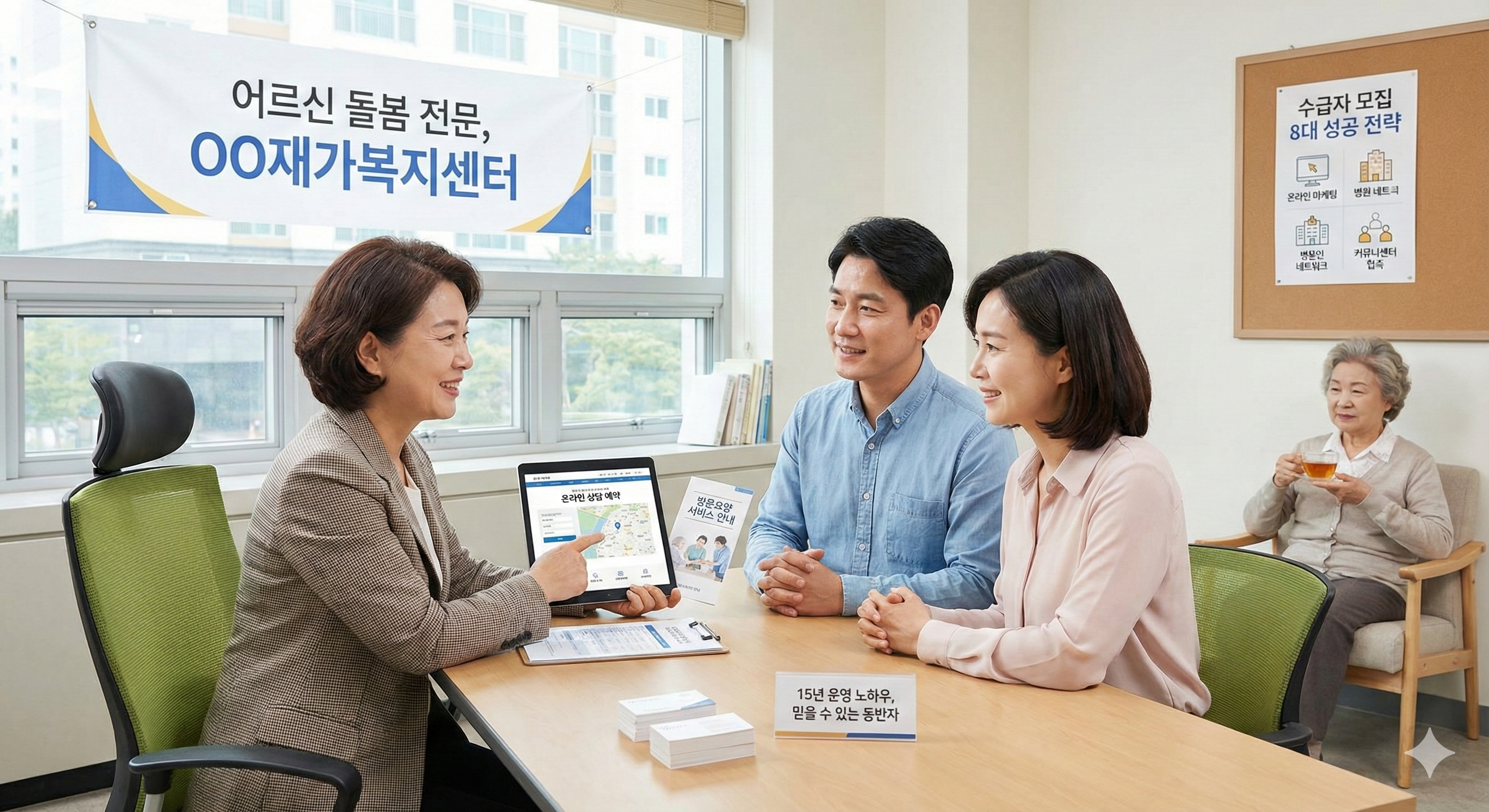 수급자 모집에 '단 하나의 정답'은 없습니다. 우리 지역의 특성, 원장님의 성향, 예산 상황에 따라 가장 효율적인 조합을 찾아내는 것이 핵심입니다.